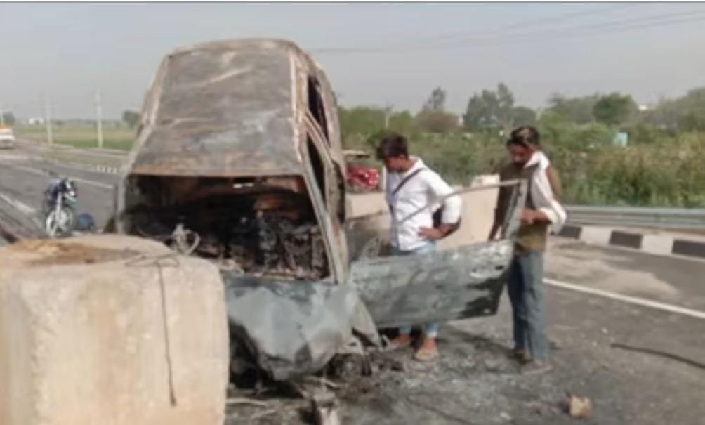 सोनीपत नेशनल हाईवे पर बड़ा हादसा, पत्थर से कार के टकराने पर लगी आग, 3 की घटना स्थल पर मौत