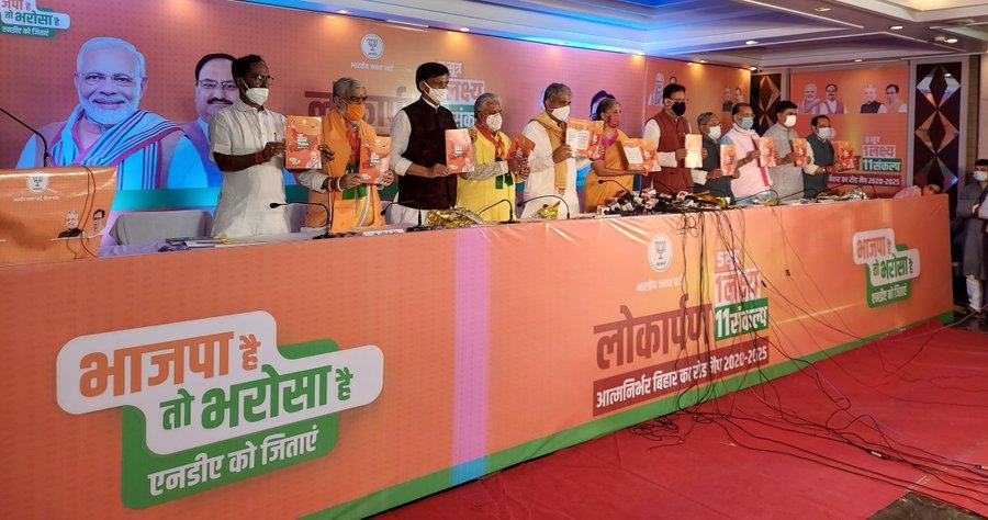 बिहार विधानसभा चुनाव के लिए भाजपा ने जारी किया अपना घोषणा पत्र 11 वादों के साथ 19 लाख लोगों को रोजगार देने का वादा Read More...