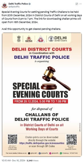 20 दिसंबर से दिल्ली पुलिस पेंडिंग चालानों को निपटाने के लिए कर रही खास इंतजाम, पेंडिंग ट्रैफिक चालानों से ऐसे पाएं छुटकारा Read More...