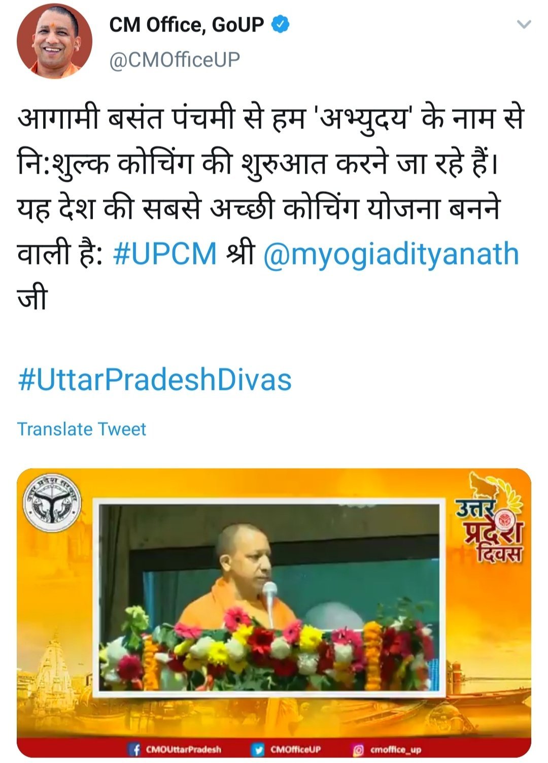 Yogi’s Big decision for the UP Student as Govt is going to start Free Online and Offline Coaching ‘Abhyuday’ from Basant Panchmi Read More...