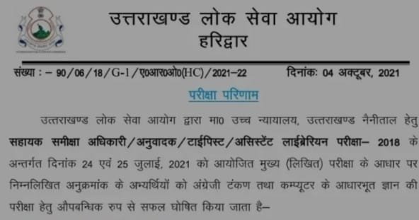 Uttarakhand High Court Jobs Result Out: नैनीताल उच्च न्यायालय में विभिन्न पदों को भरने के लिए आयोजित हुई परीक्षा परिणाम जारी Read More...