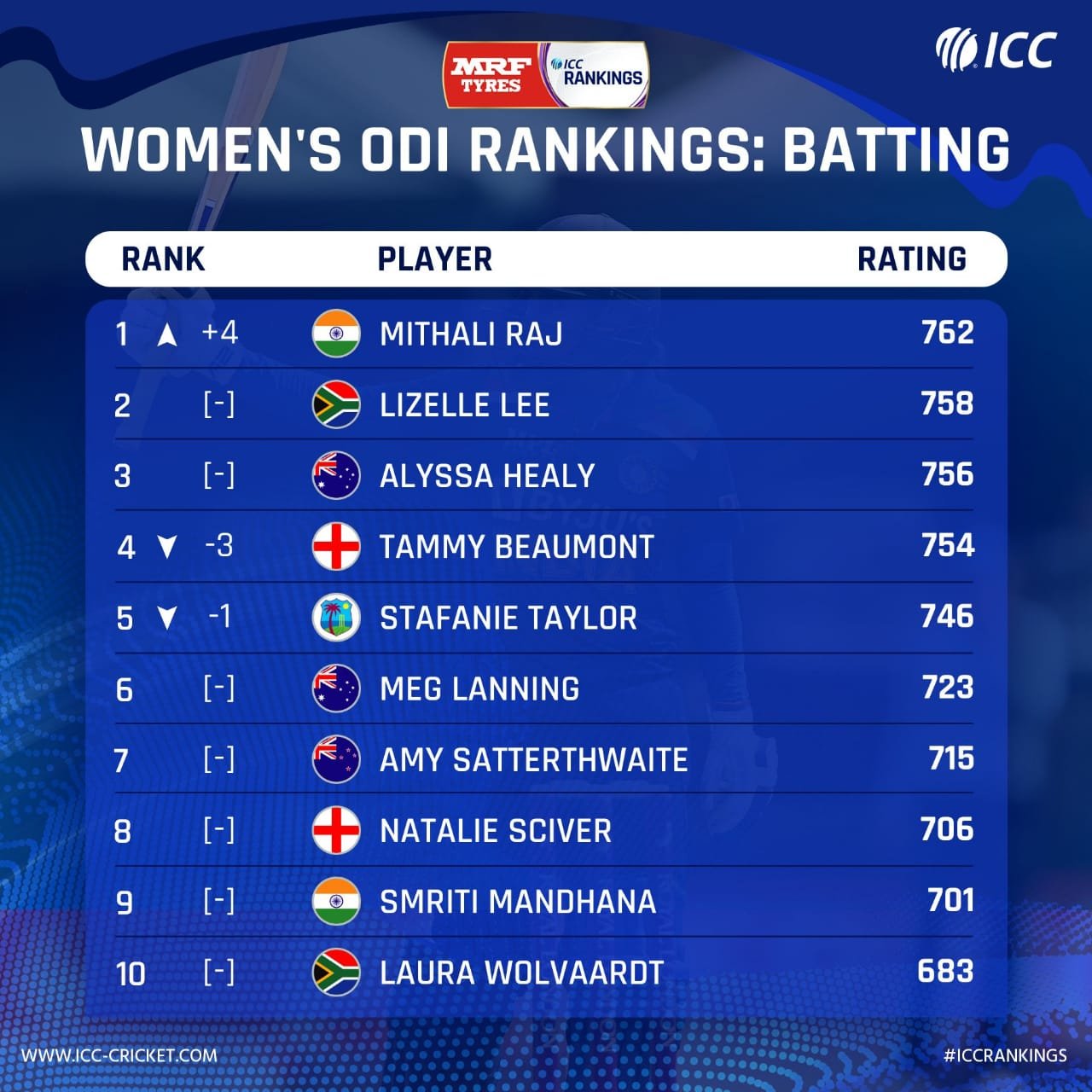 India’s Women Cricket Team Captain Mithali Raj returns to the Top spot for 8th time in recent ICC Women’s ODI Ranking Read More...
