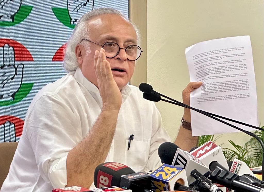जयराम रमेश ने कहा कि यूनिफॉर्म सिविल कोड को लेकर लॉ कमीशन ने 14 जून को जनता और विभिन्न संस्थाओं से विचार मांगे थे। 15 जून को कांग्रेस ने एक बयान जारी किया था, कांग्रेस पार्टी उस बयान पर अडिग है। 15 जून से आज तक कोई ऐसी नई स्थिति पैदा नहीं हुई है कि कांग्रेस पार्टी इस बयान को और आगे ले चले।पिछले 16 दिनों में ऐसी कोई नई बात सामने नहीं आई है, कोई मसौदा नहीं आया है, कोई विधेयक नहीं आया है, सिर्फ बयानबाजी चल रही है। अगर मसौदा है, अगर विधेयक है, तो हम कुछ और कह सकते हैं। मगर आज की स्थिति ऐसी है कि 15 जून को जो पार्टी की तरफ से कहा गया था, वो आज भी हम दोहरा रहे हैं।
