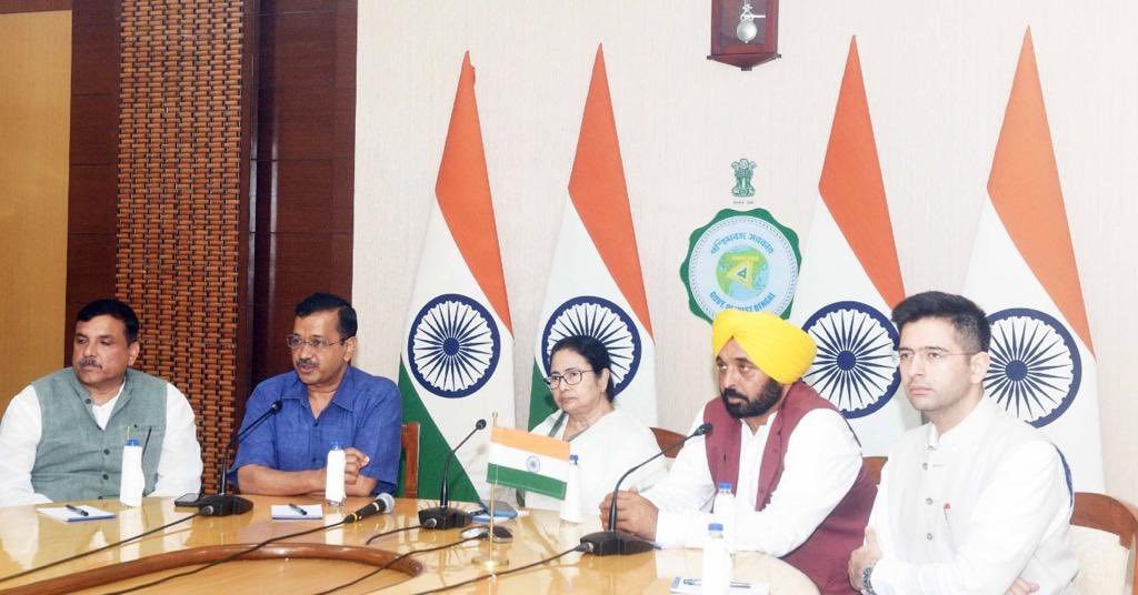 आम आदमी पार्टी के राष्ट्रीय संयोजक और दिल्ली के मुख्यमंत्री अरविंद केजरीवाल आज दीदी का साथ मांगने पश्चिम बंगाल पहुँचे जहां उनके साथ पंजाब के मुख्यमंत्री भगवंत मान, राज्यसभा सांसद संजय सिंह, राघव चड्डा, आतिशी सिंह भी थी। आप के नेताओं ने तृणमूल कांग्रेस की सुप्रीमों ममता बनर्जी से सरकार के लाये अध्यादेश के खिलाफ राज्यसभा में साथ मांग.
