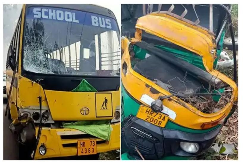 पलवल में बड़ा हादसा, स्कूल बस और ऑटो की टक्कर में एक ही परिवार के पांच सदस्यों की मौत, पांच घायल