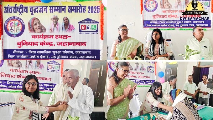 जहानाबाद (बिहार): अंतर्राष्ट्रीय वृद्धजन सम्मान समारोह 2025 के अवसर पर जहानाबाद के गांधी मैदान स्थित बुनियाद केंद्र में  एक गरिमामय सम्मान समारोह का आयोजन किया गया। कार्यक्रम का आयोजन जिला सामाजिक सुरक्षा कोषांग एवं जिला कार्यक्रम प्रबंधन इकाई सह बुनियाद केंद्र, जहानाबाद के सौजन्य से किया गया।