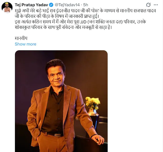 तेज प्रताप ने लिखा कि उनका पूरा परिवार और पार्टी इस कठिन समय में राजपाल यादव के साथ खड़ा है। उन्होंने यह भी कहा कि यह राशि उनके पारिवारिक और कानूनी संकट को कम करने में सहायक होगी।